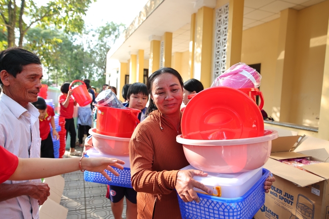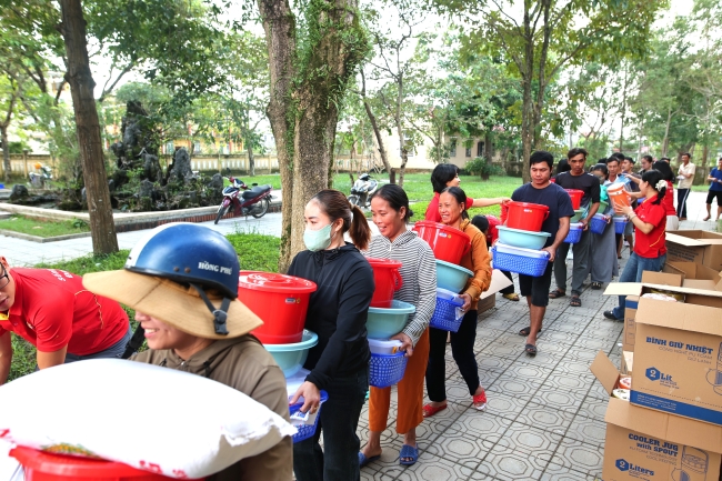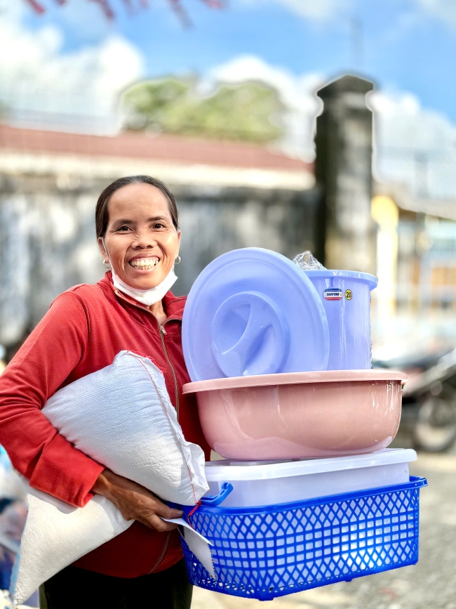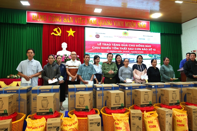 Trước những khó khăn đó, đoàn thiện nguyện của Duy Tân đã trực tiếp đến thăm hỏi và trao tặng 400 phần quà hỗ trợ cho người dân tại xã Quảng Điền và phường Hóa Châu. Các đồ dùng thiết thực như tủ, thau – xô, thùng, bình thủy, bình giữ nhiệt, sóng, cần xé,… được trao tay từng hộ dân, góp phần giúp bà con dọn dẹp nhà cửa, dựng lại góc bếp, khôi phục sinh hoạt và từng bước tái sản xuất sau thiên tai. Với nhiều người dân, đây không chỉ là nguồn hỗ trợ vật chất kịp thời mà còn là nguồn động viên tinh thần lớn lao giữa lúc khó khăn chồng chất.