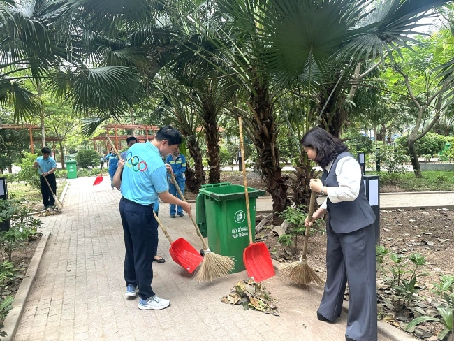 Lực lượng môi trường và người dân cùng ra quân, quét dọn và làm sạch các tuyến đường – khuôn viên trong chương trình “Ngày cuối tuần xanh” tại phường Đống Đa (Hà Nội).