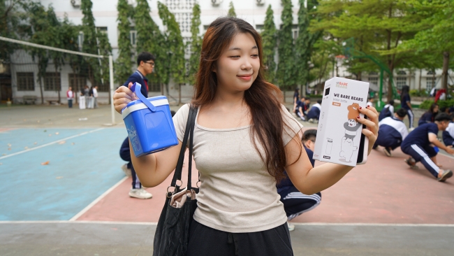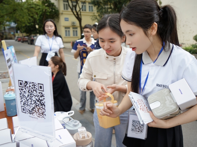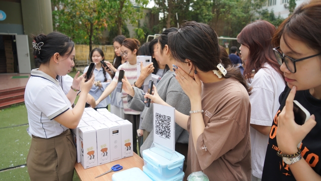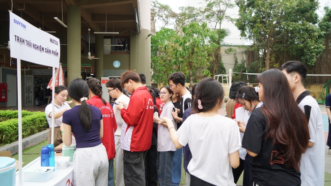 Sinh viên hào hứng trải nghiệm sản phẩm và tương tác trực tiếp cùng nhãn hàng