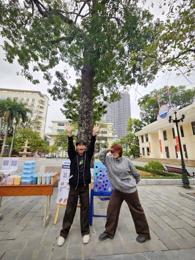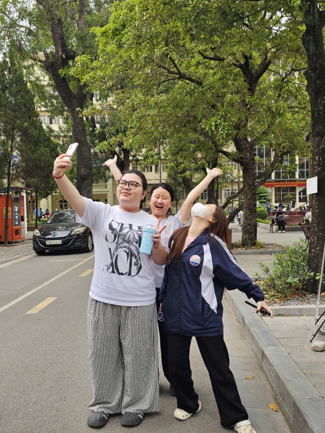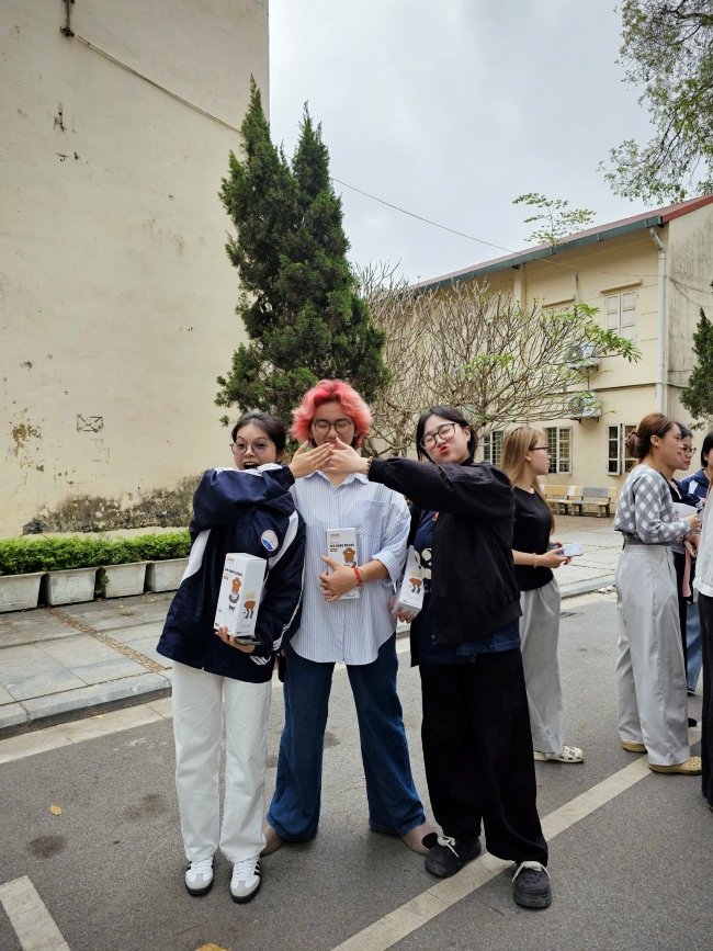 Và đương nhiên, chụp một lần là chưa đủ. Những tiếng trao đổi rôm rả xen lẫn tiếng cười khiến khu vực check-in lúc nào cũng náo nhiệt. Chỉ cần đứng ở đó vài phút là đủ thấy: đây không chỉ là một góc chụp ảnh, mà là nơi các bạn trẻ cùng nhau sáng tạo, tương tác và ghi lại những khoảnh khắc “đậm chất sinh viên”.