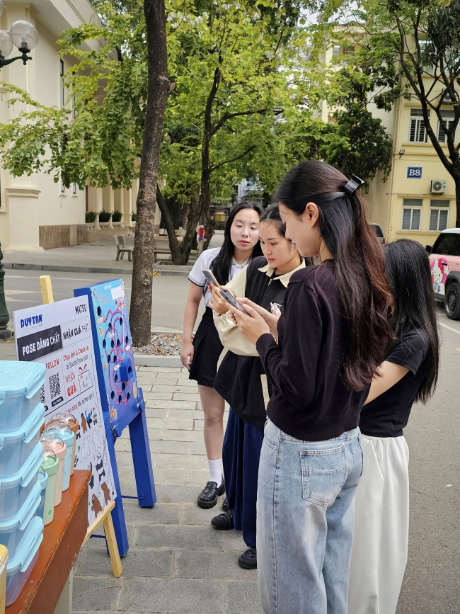 Không chỉ chơi và nhận quà, sinh viên còn có thể tham gia khảo sát nhanh ngay tại booth. Chỉ vài thao tác đơn giản, các bạn vừa nhận quà, vừa có cơ hội chia sẻ góc nhìn của mình.