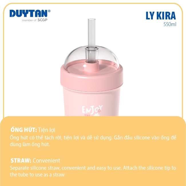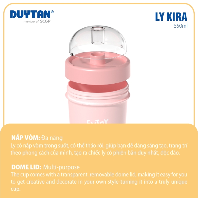 Ly KIRA sở hữu kiểu dáng hiện đại với thân ly trong suốt và đường nét mềm mại, cực kỳ dễ cầm nắm. Với dung tích 550ml cùng thiết kế nhỏ gọn, ly dễ dàng đồng hành cùng bạn trong balo, túi xách hoặc đặt gọn gàng ở góc học tập.