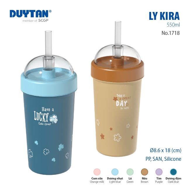 Ly KIRA có sẵn nhiều màu sắc trendy, phong cách như Tím, Xanh dương, Xanh mint, Nâu, và Cam sữa. Sự đa dạng này giúp bạn thoải mái lựa chọn, thể hiện cá tính riêng, và hoàn toàn phù hợp cho học sinh, sinh viên cùng người trẻ năng động.Chất liệu an toàn, yên tâm cho mỗi lần sử dụng.