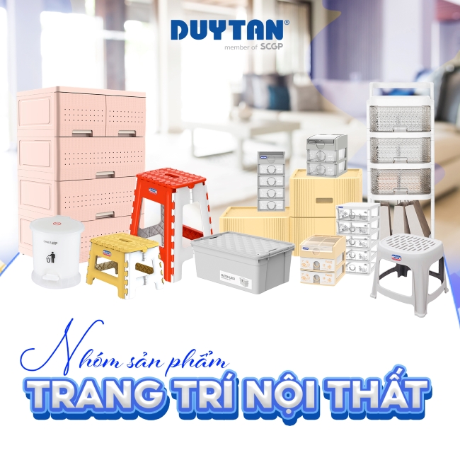 🔹 Sản phẩm Trang Trí Nội Thất: Nhựa Duy Tân mang đến giải pháp lưu trữ sáng tạo với các loại tủ, kệ đa năng vừa tiện lợi lại vừa thẩm mỹ, giúp tối ưu không gian sống. Không những thế, các sản phẩm bàn ghế của Duy Tân cũng trở thành một phần quen thuộc trong cuộc sống của nhiều gia đình, từ thời thơ ấu đến khi trưởng thành.